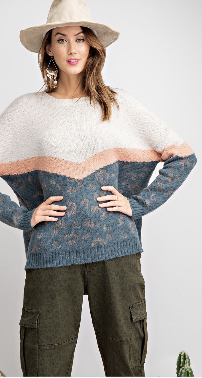 On The Loose Teal Leopard Sweater
